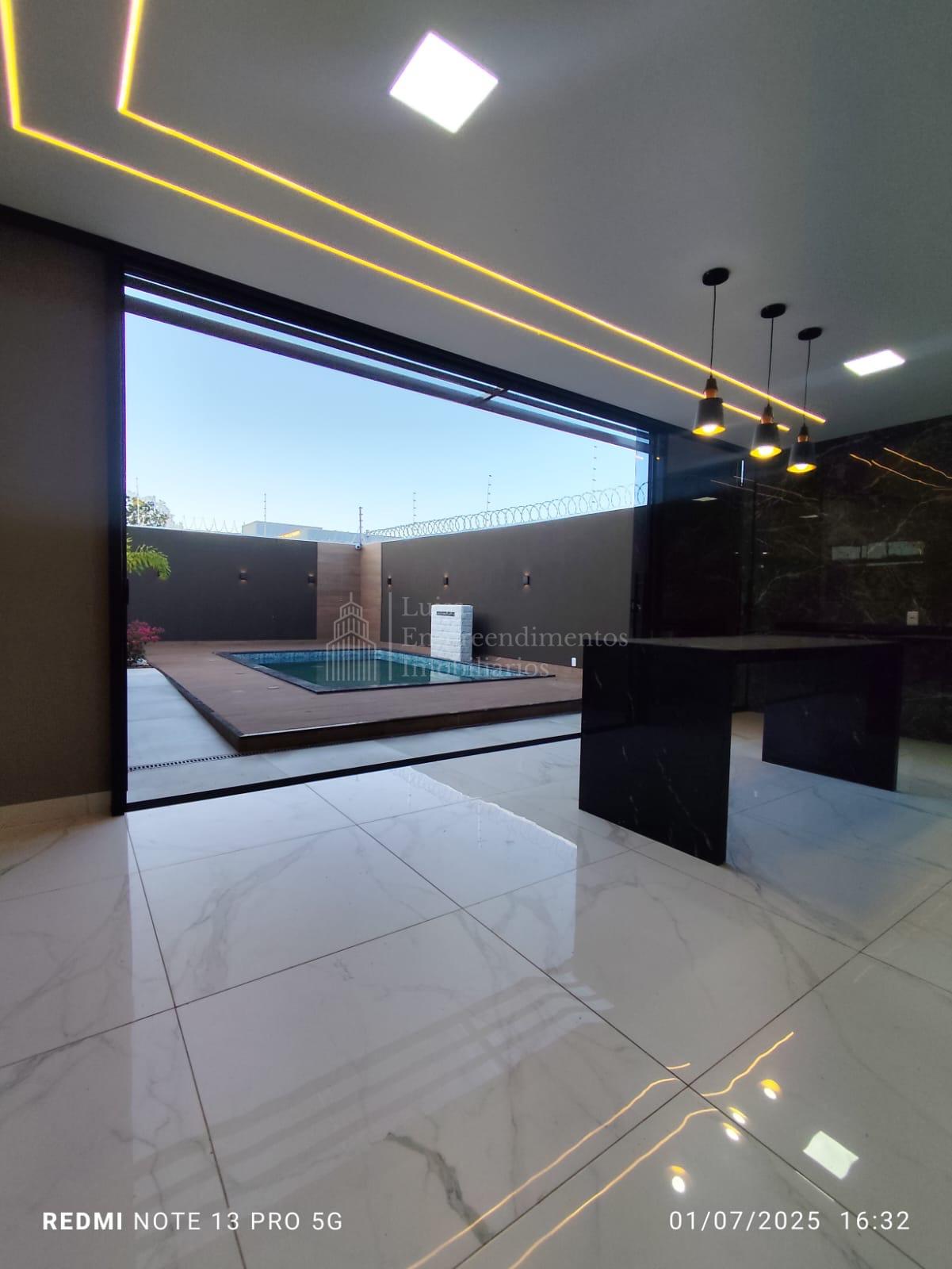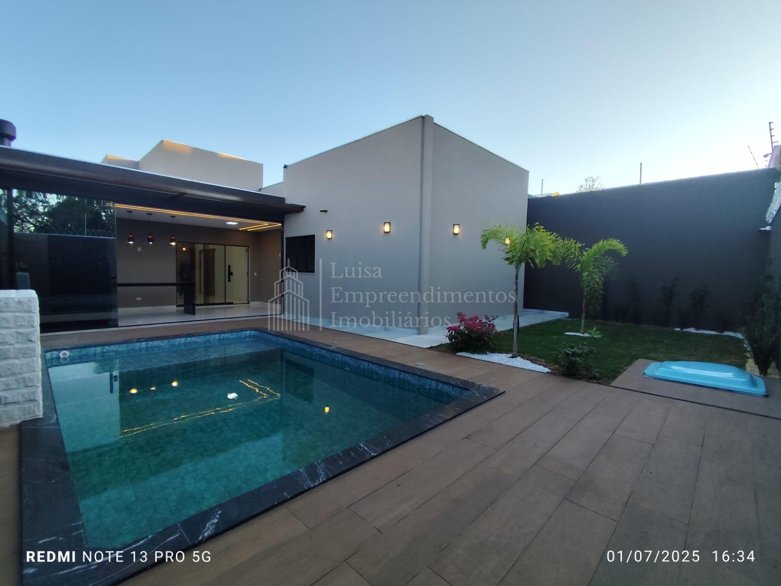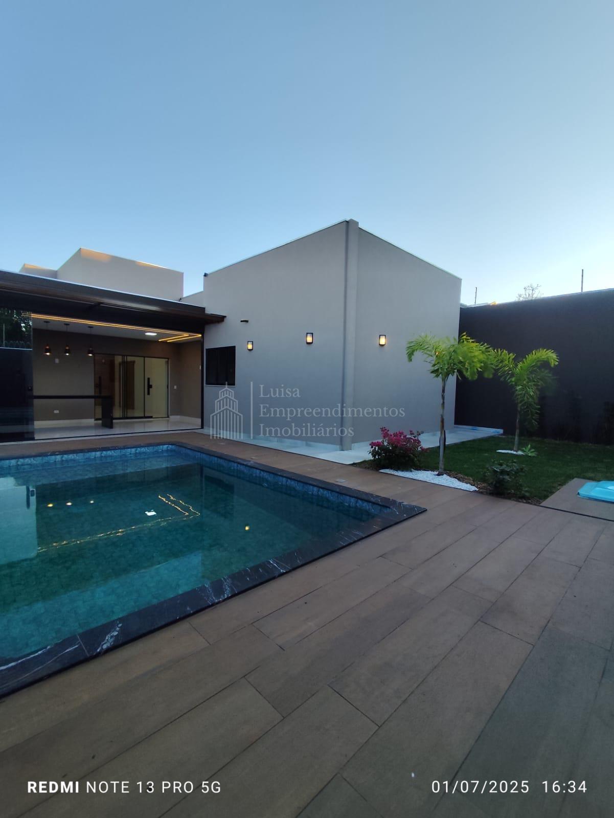 Magnífica casa térrea em Água Limpa Park, área total de 360 m², área útil de 156 m², sala de estar, sala de jantar, sala de TV, lavabo, lavanderia, um banheiro social, cozinha, dois quartos, uma suíte, varanda gourmet com churrasqueira, piscina aquecida e garagem para quatro veículos. Casa térrea com piso porcelanato, metais e louças de alto padrão, iluminação LED, projeto luminotécnico diferenciado e paisagismo, com cozinha ampla, varanda gourmet com churrasqueira e fechamento em blindex, piscina aquecida com cascata, uma suíte e dois quartos, próxima à UCDB e à Avenida Tamandaré.